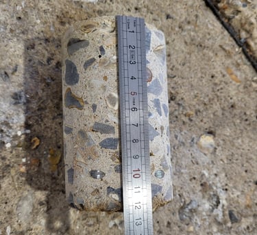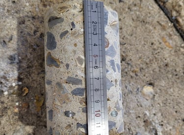 Essais destructifs : Relevé des sections d'aciers et sections résiduelles en cas de corrosion des armatures, relevé des sections de structures bois et métalliques.